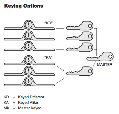 - Key can be removed in either the locked or unlocked position. Key removable in only the locked position is an available option.