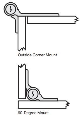 Besides flush mount, TUFLOC® Locks can accommodate a corner 90-degree mount (left/right) or an outside corner mount. For best results, mount TUFLOC® Locks on the strongest part of the unit with the key in the down position. View Mounting Instructions.